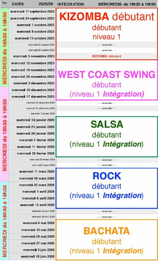 Rock, Salsa, Bachata, West Coast Swing, Salon, Kizomba, Tango Argentin...
